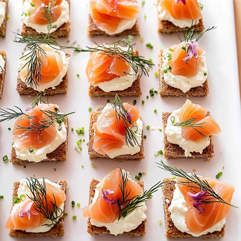 - Smoked Trout Alternative: Use smoked trout instead of salmon for a different flavor profile. It has a similar texture but brings its own delightful smokiness to these elegant bites.