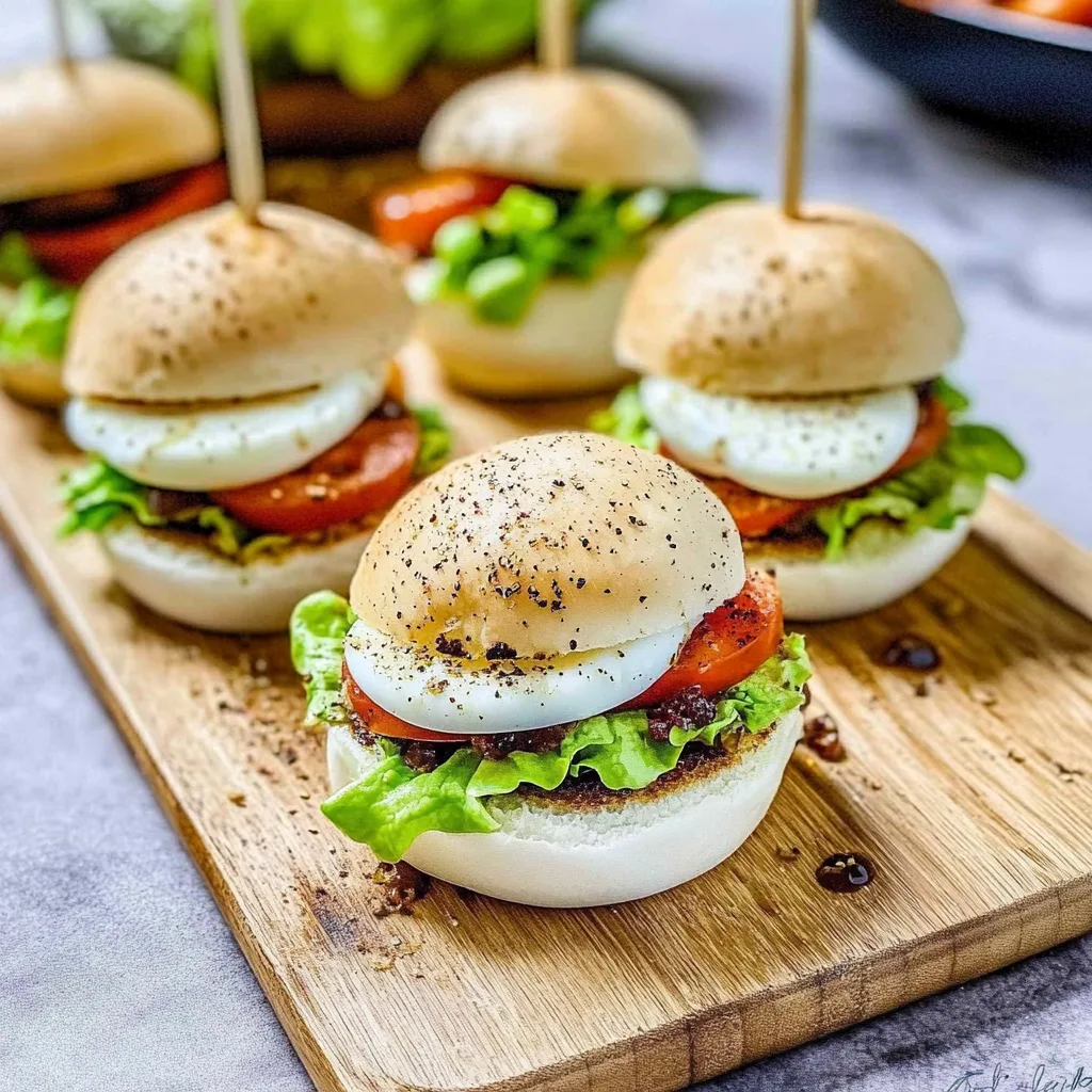 Imagine sinking your teeth into a warm, soft slider bun that cradles crispy bacon, fresh lettuce, and juicy tomatoes, all topped with a perfectly cooked egg. The delightful fusion of flavors and textures dances on your palate, making every bite an irresistible experience you can’t help but savor.