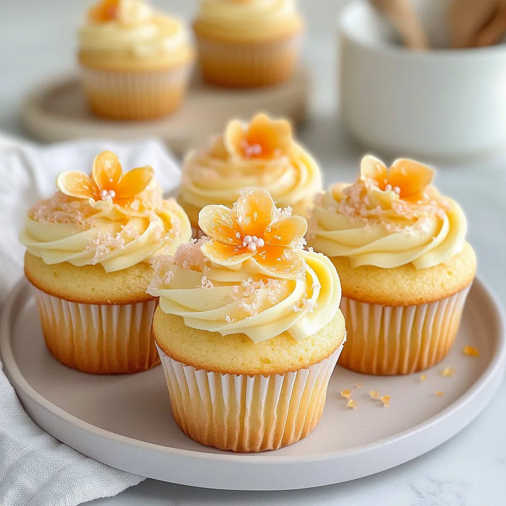 If you’re looking to simplify your baking routine, these Lemon Blossom Cupcakes are perfect for meal prep. You can prepare the cupcake batter in advance by creaming together the softened butter and granulated sugar, then adding in the eggs, buttermilk, freshly squeezed lemon juice, and zest. This batter can be stored in the fridge for up to 24 hours before you bake. When you’re ready to serve, simply preheat your oven to 350°F (175°C), whisk together the dry ingredients, combine them with the wet mixture, and bake for 15-18 minutes. As for the lemon buttercream frosting, it can also be made ahead of time and kept in an airtight container for up to 3 days. Just remember to re-whip it before frosting your cooled cupcakes to maintain that light, fluffy texture. With these simple steps, you’ll have delightful Lemon Blossom Cupcakes ready whenever you need a sweet treat!