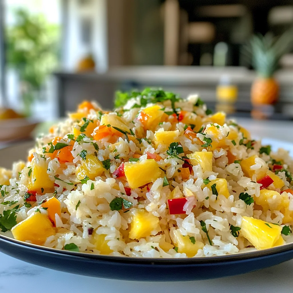 This Pineapple Mango Rice Salad is a fantastic choice for meal prep, allowing you to enjoy its vibrant flavors without the last-minute rush. You can prepare many components in advance: cook and cool your jasmine or basmati rice, chop the fresh pineapple and mango, dice the red bell pepper and red onion, and finely chop the cilantro—these can all be done up to 24 hours ahead. Just remember to store the ingredients separately in airtight containers in the refrigerator to maintain their freshness. When you’re ready to serve, simply combine everything in a large mixing bowl, whisk together the lime juice, olive oil, salt, and black pepper in a small bowl, then pour the dressing over the rice mixture. Toss gently to combine, chill for at least 15 minutes to let those delicious flavors meld together, and you have a refreshing side dish or light meal ready to impress!
