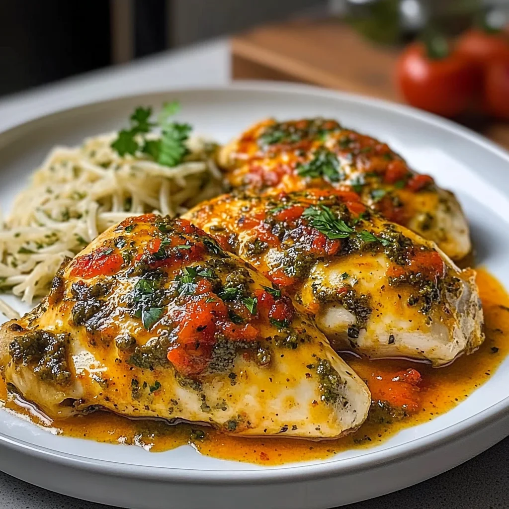 Quick and easy to prepare, this dish comes together in just 15 minutes of prep and 30 minutes of cooking—perfect for busy weeknights! Flavor-packed with rich red pesto, it elevates your chicken game with minimal effort. Versatile enough for any side, whether you’re serving it with pasta or a fresh salad. Crowd-pleaser guaranteed; even picky eaters will be asking for seconds! Garnished with fresh basil and Parmesan, it’s not just a meal but a delightful experience.