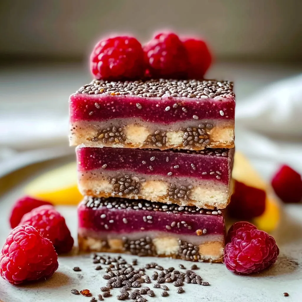 - Once set, cut into bars and top with fresh berries, nuts, and coconut flakes.