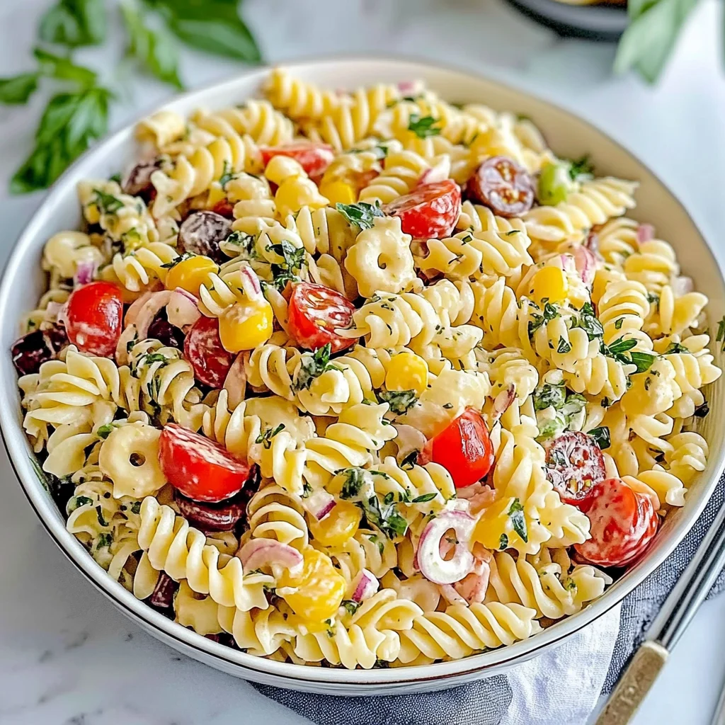 This pasta salad can be made ahead of time and stored in the refrigerator for up to 3 days.