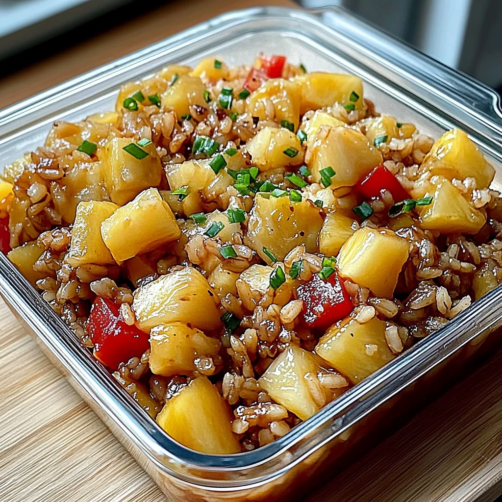 - Divide the pineapple brown rice mixture into bowls. Garnish with chopped green onions and sesame seeds before serving.