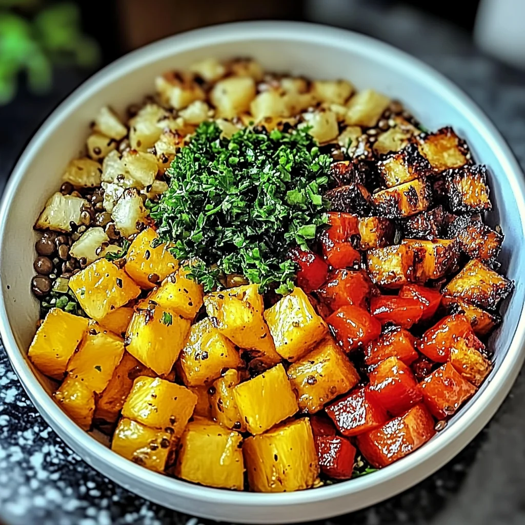 - In serving bowls, layer the cooked lentils and roasted vegetables.