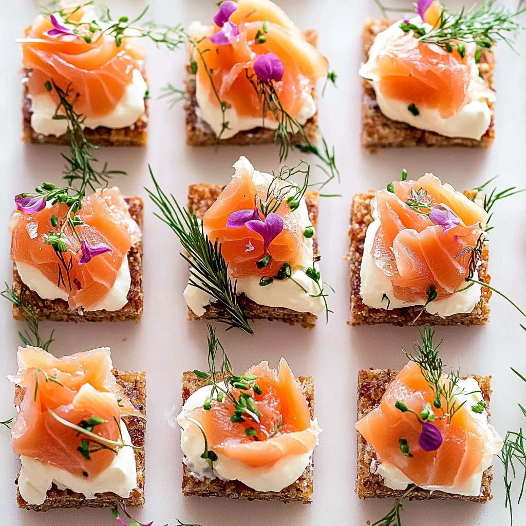 - Layer a slice of smoked salmon on top of the cream cheese.