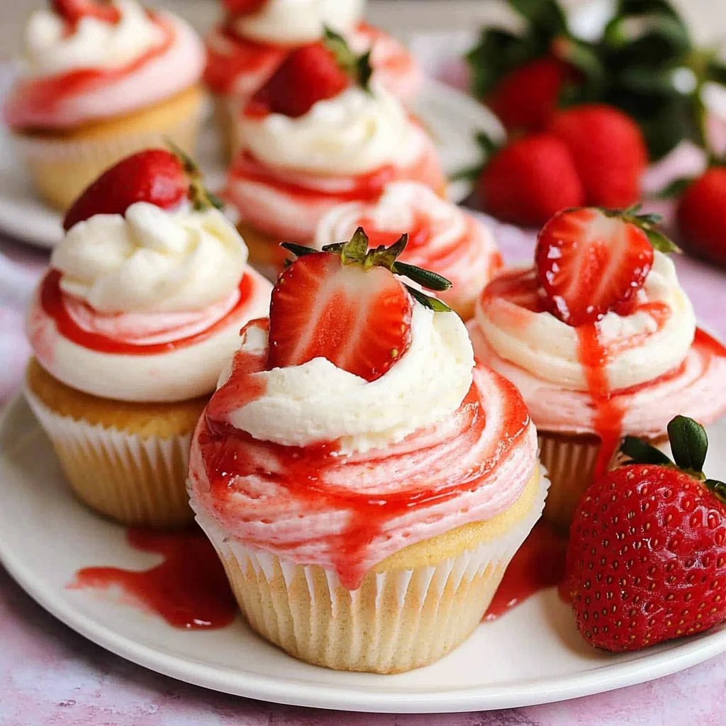 - Once the cupcakes are completely cool, frost them generously with the strawberry cream frosting.
