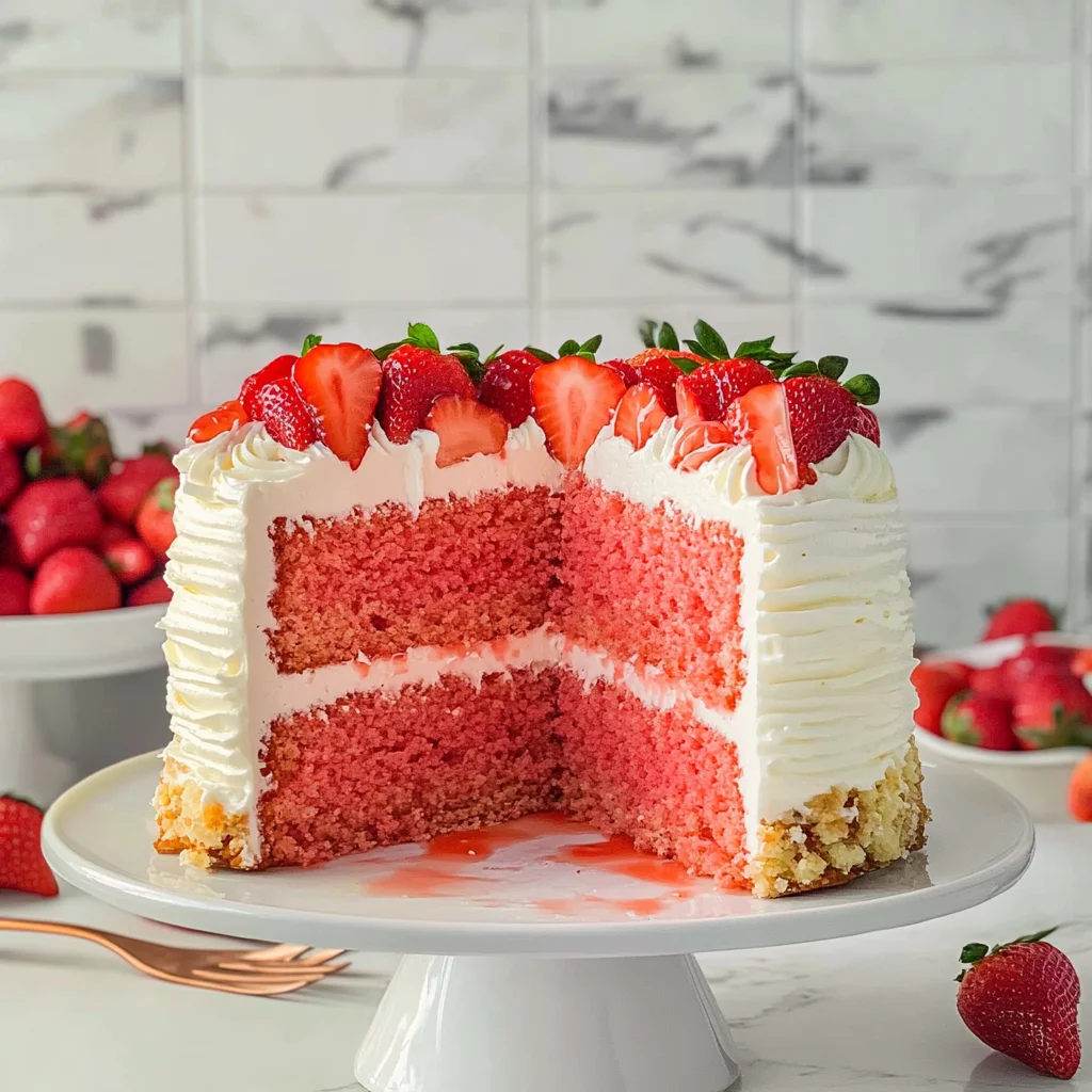 For best results, use fresh strawberries and serve the cake the same day it is made.